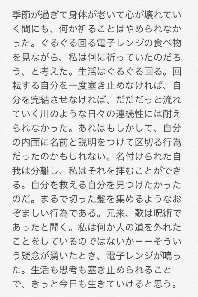 或许我确实适合把心灵寄托在信仰上, 即便自己明白不健康的依存症状恰恰和信仰先于一切的口号无关, 只不过是丧失主体性的表现, 一厢情愿将它做文字意义上的重叠, 骗过的也只有自己。